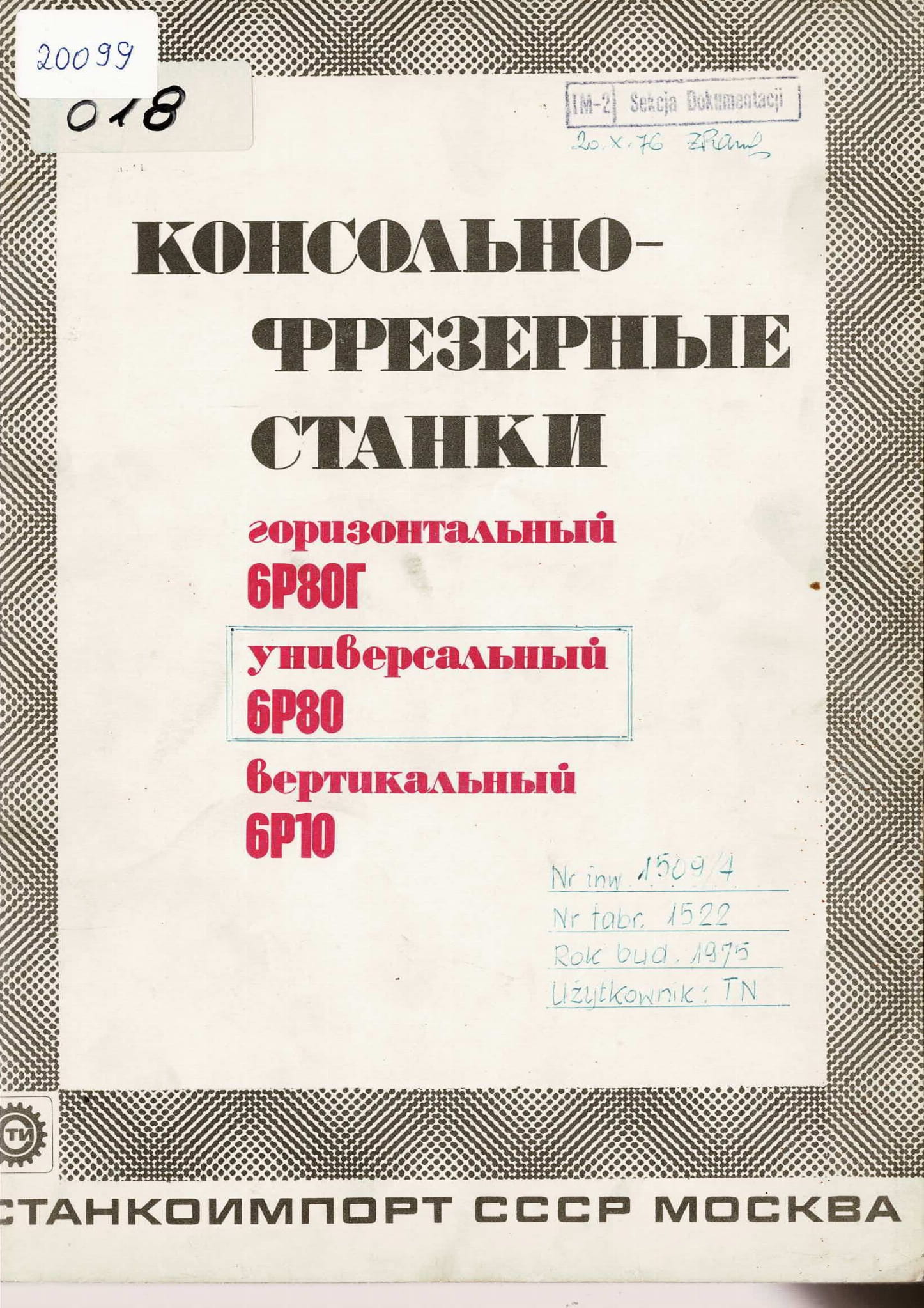 Dokumentacja DTR, instrukcja Frezarka Stanko 6P80 (RU)