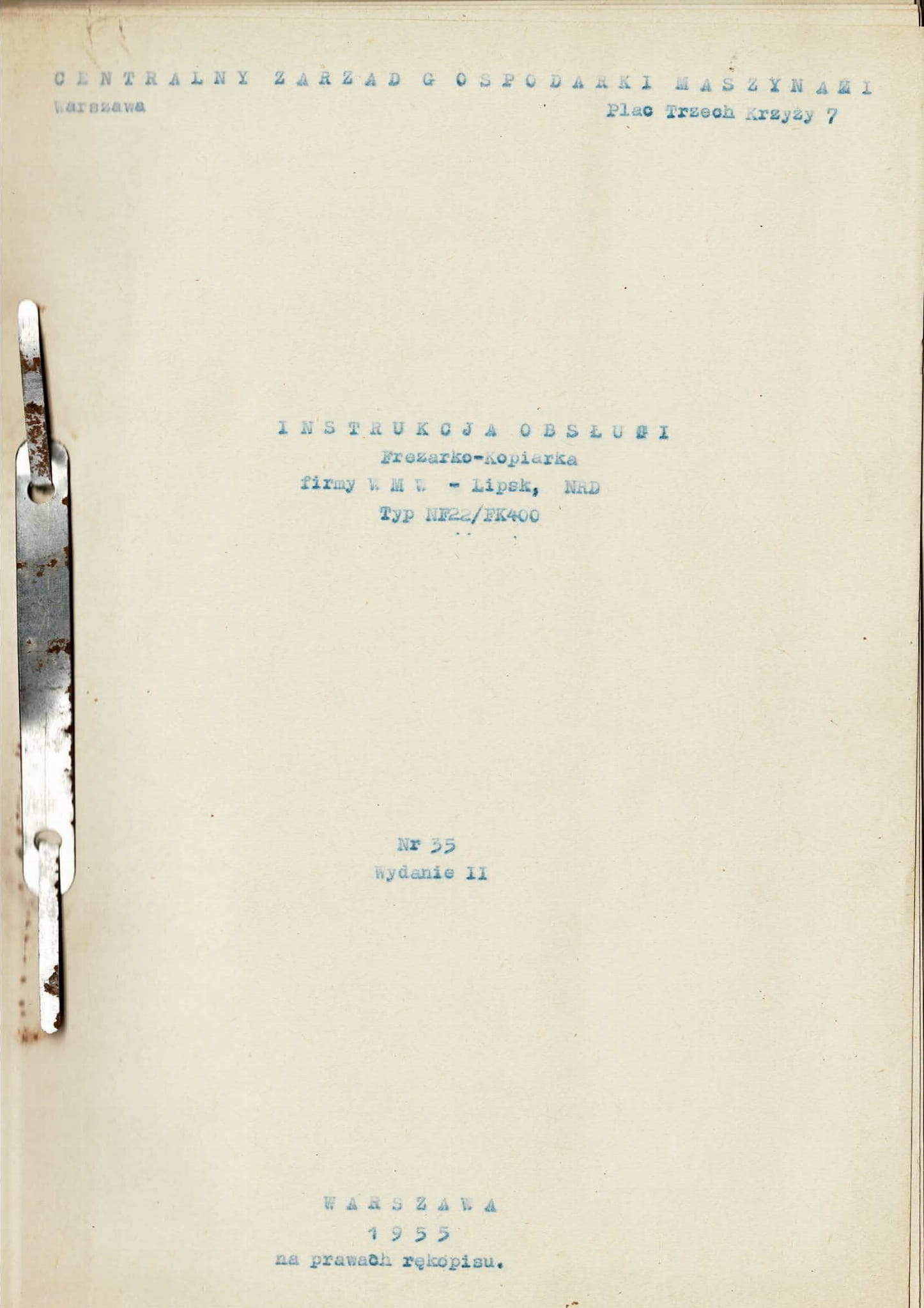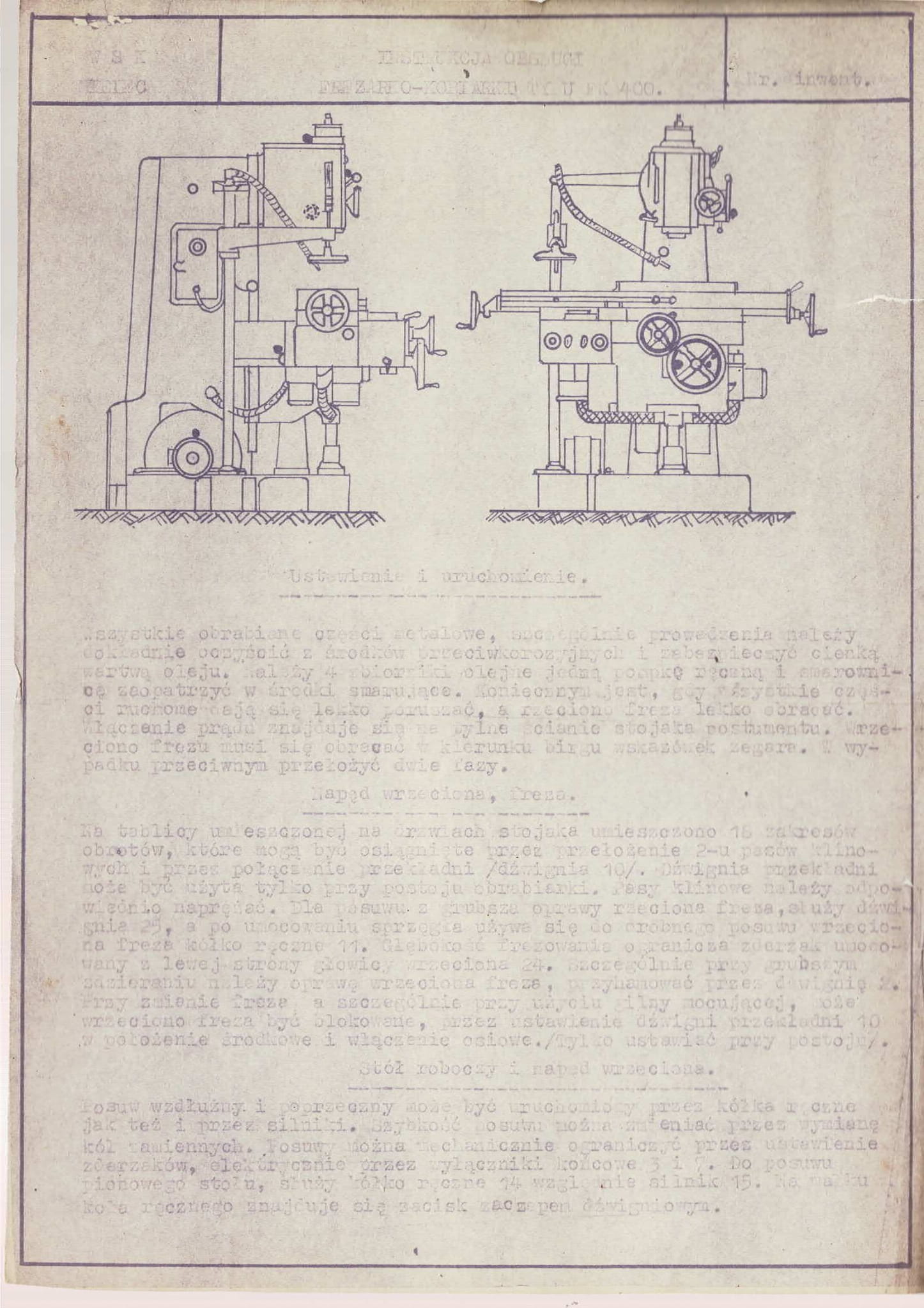- dokumentacja DTR Frezarka Frezarko-kopiarka WMW NF22/FK400