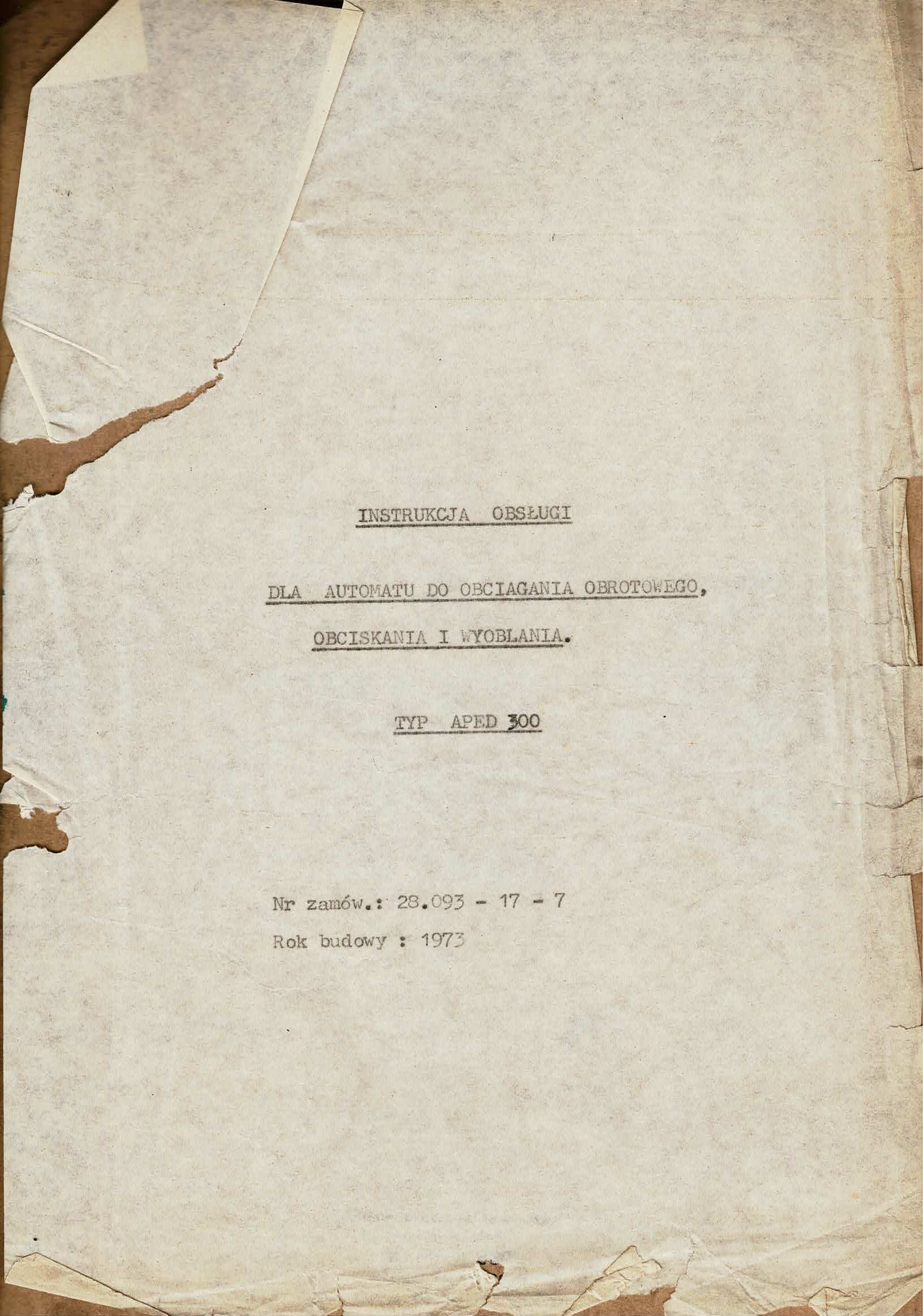 - dokumentacja DTR automat do obciągania, obciskania i wyoblania Leifeld APED 300