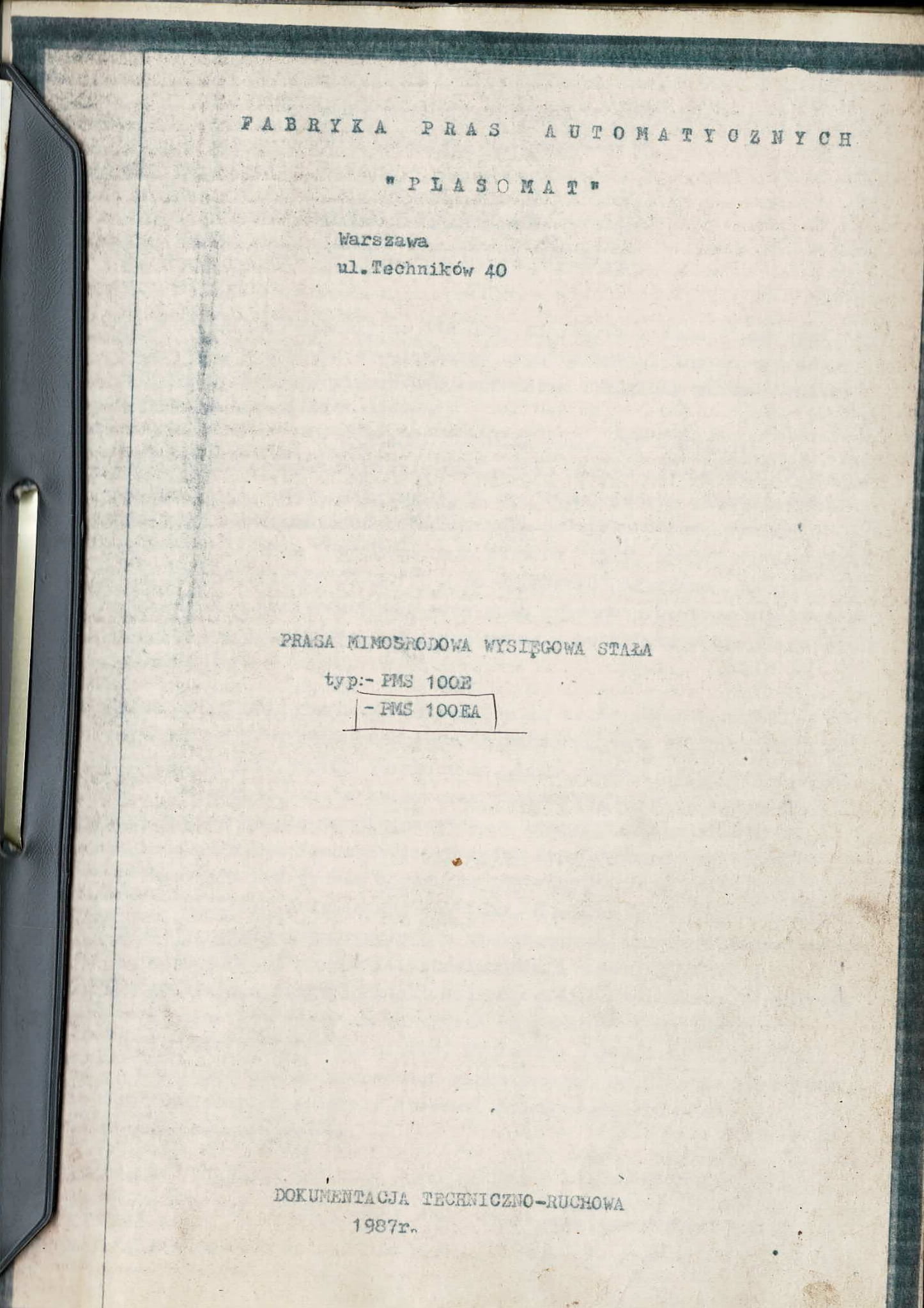 - dokumentacja DTR Prasa PMS-100 E