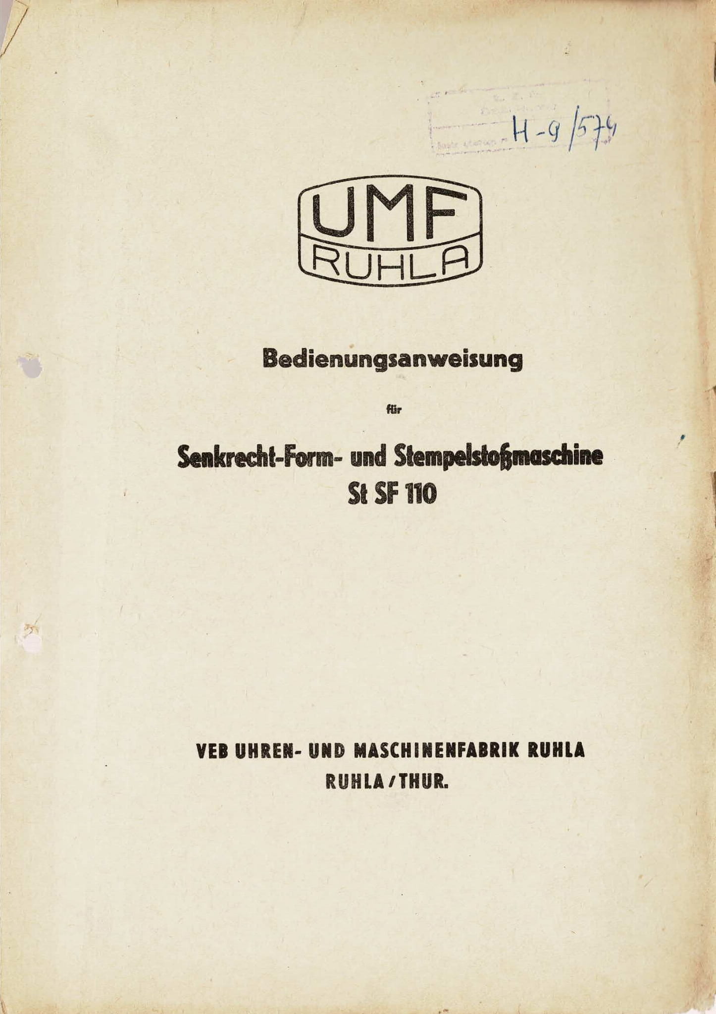Dokumentacja DTR, instrukcja UMF Ruhla SF 110 (DE)