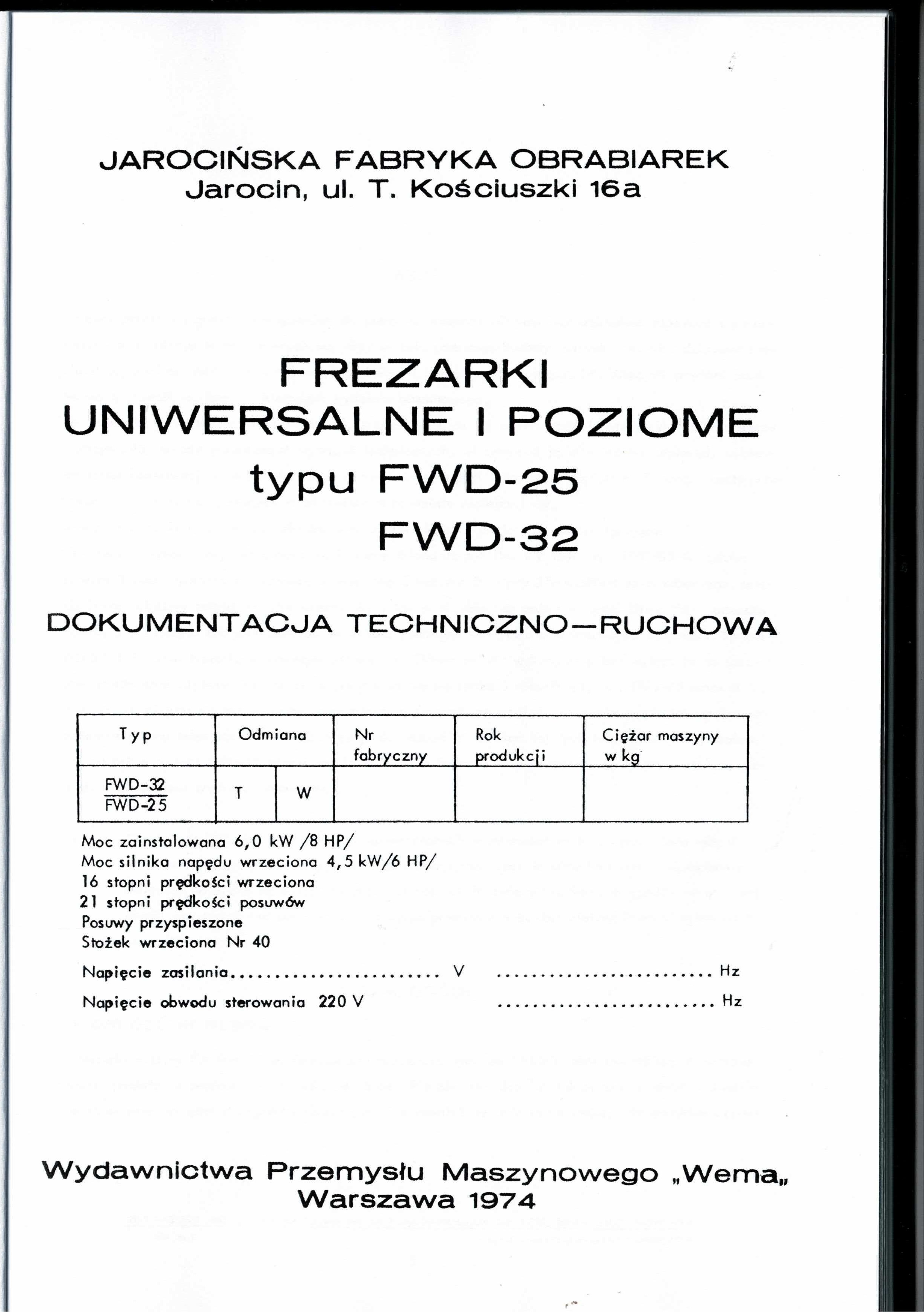 - dokumentacja DTR Frezarka FWD-25 FWD-32