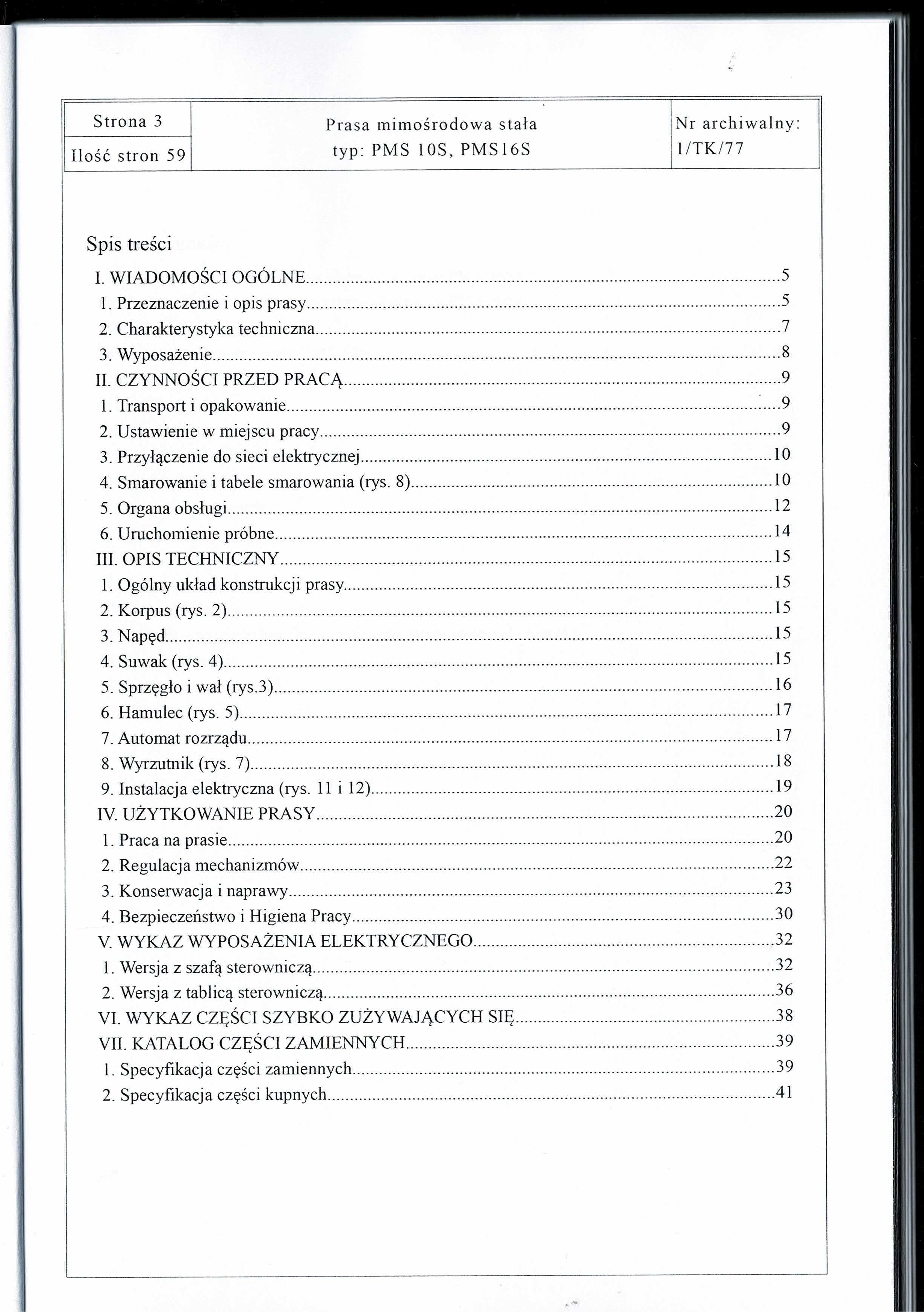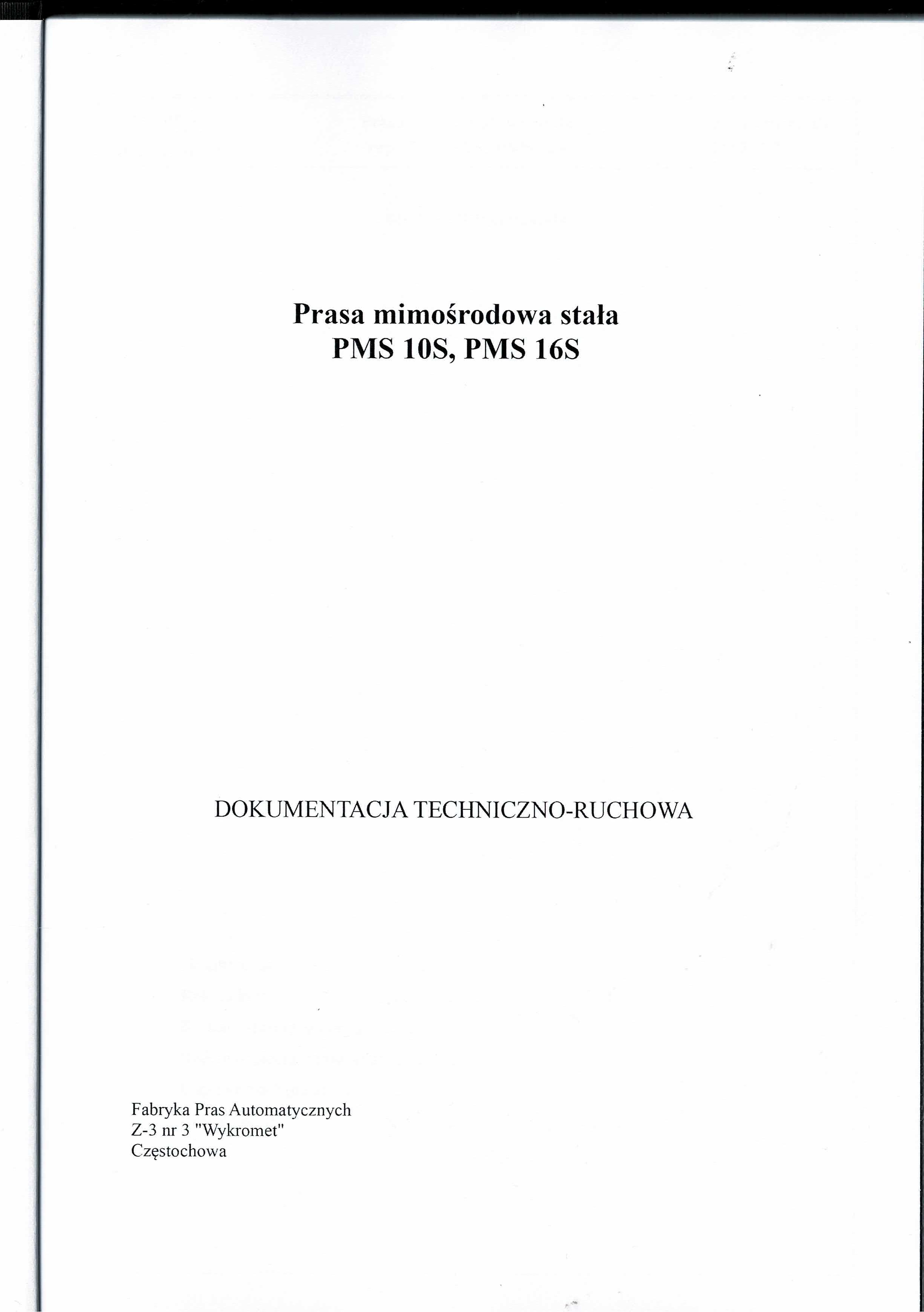 - dokumentacja DTR Prasa PMS 10S/16S