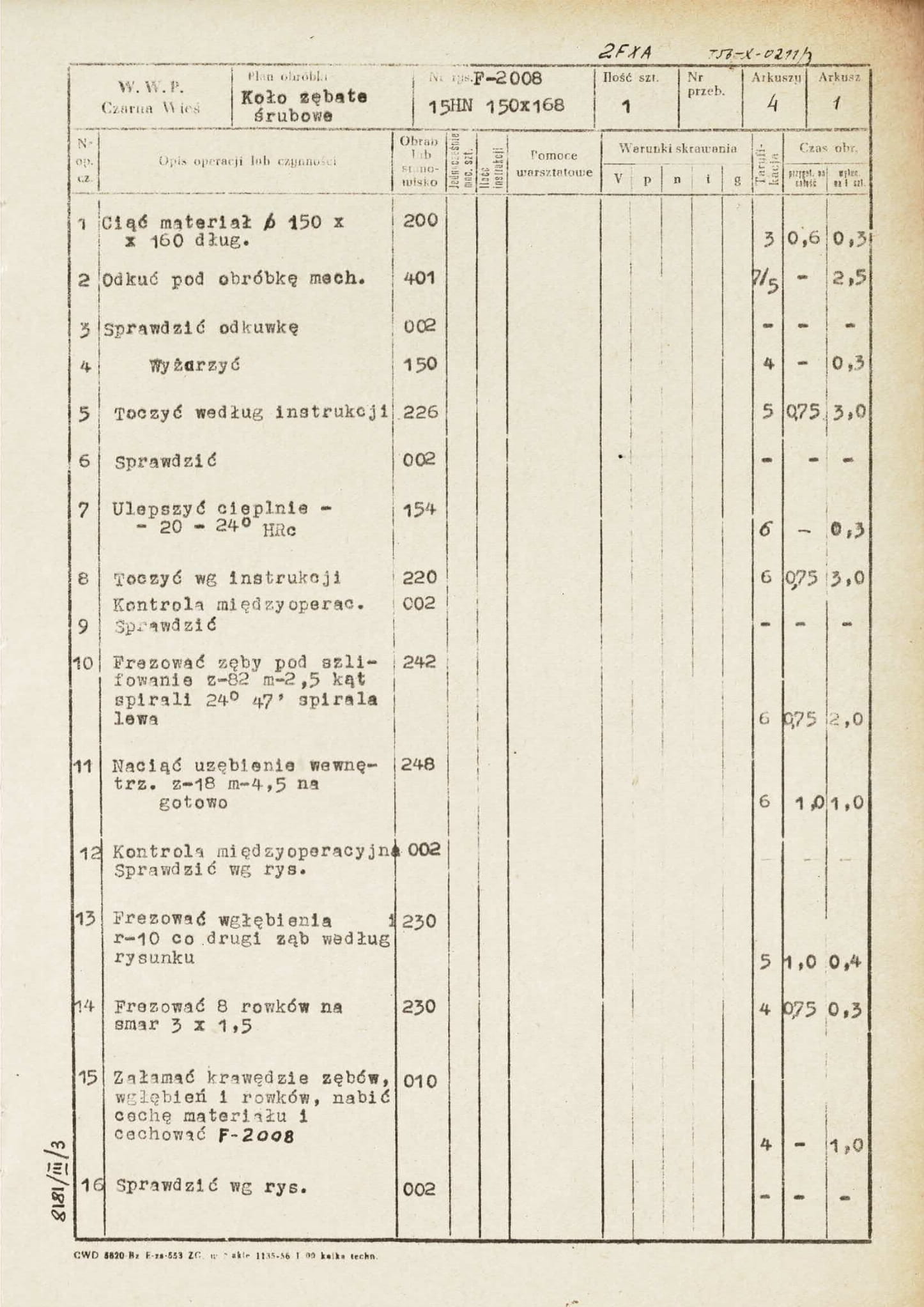- dokumentacja remontu kapitalnego Frezarka 2FXA